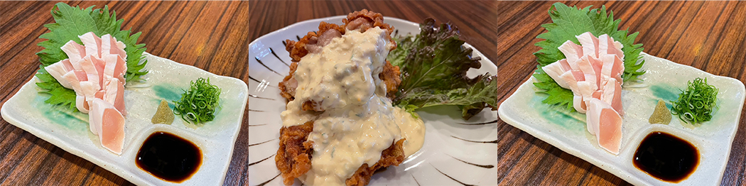 鮮度を活かした鶏料理を取り揃えており、「ささみ刺身」「ささみユッケ」など、安心・安全な生食の提供も行っております。