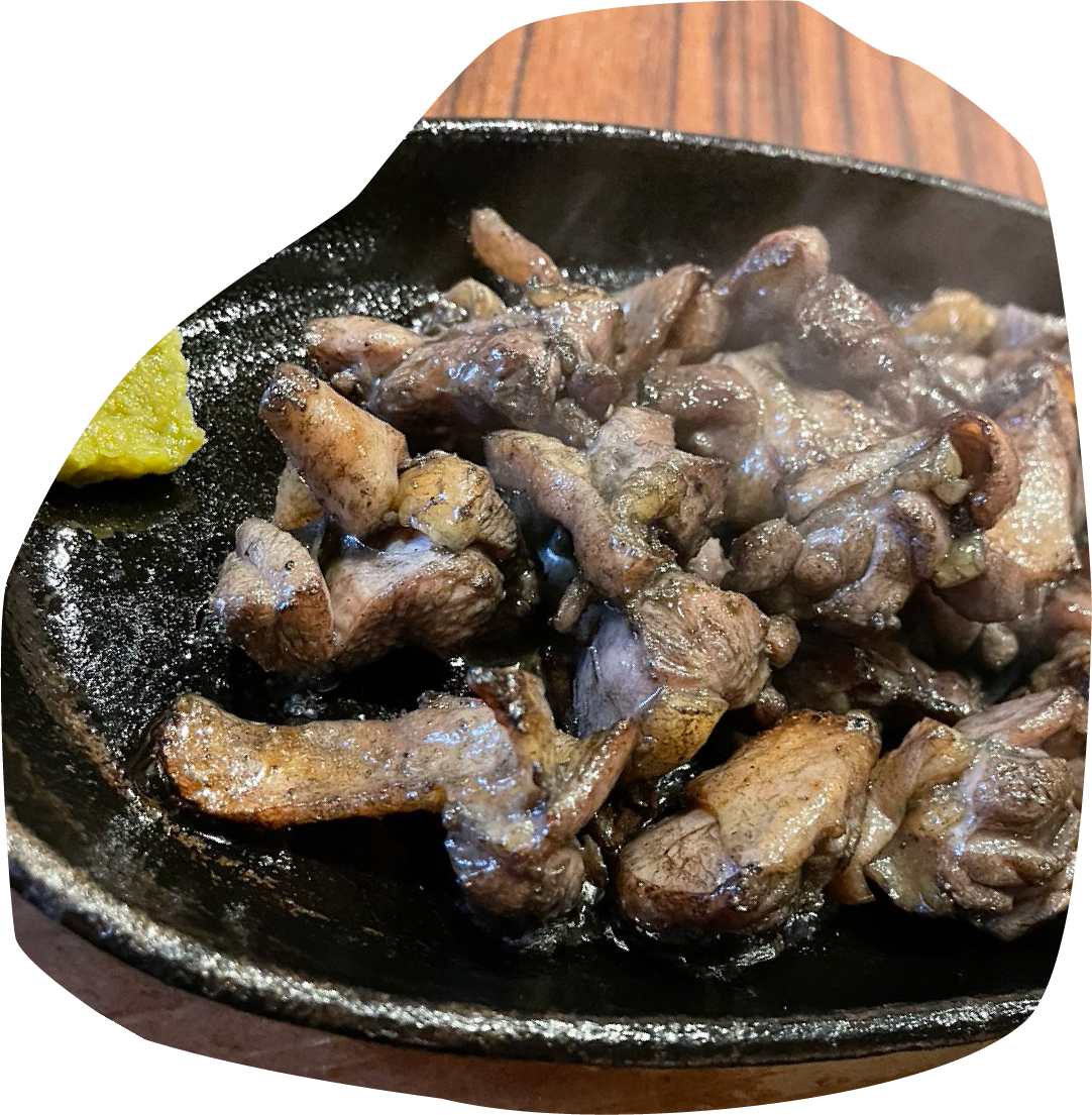 もも焼き・ソリレスあぶりの二大名物を筆頭に、その他部位のあぶり焼きも充実。